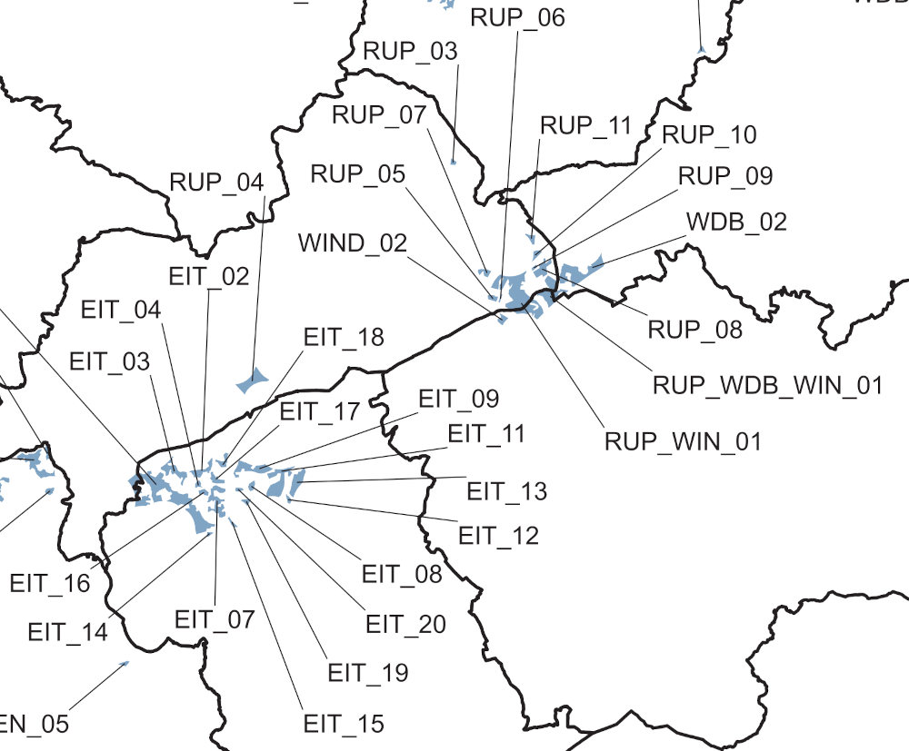 Die im Regionalplan beantragten Standorte und die jetzt tatsächlich in der Umsetzung befindlichen Standorte weichen teilweise voneinander ab. Bitte vergleichen Sie die beiden Karten. (Siehe auch u.g. Bürgerinformationssysteme aus Eitorf und Ruppichteroth)