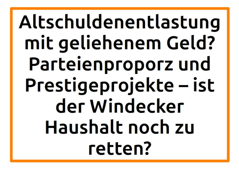 [*] Altschuldenentlastung mit geliehenem Geld? Parteienproporz und Prestigeprojekte – ist der Windecker Haushalt noch zu retten?